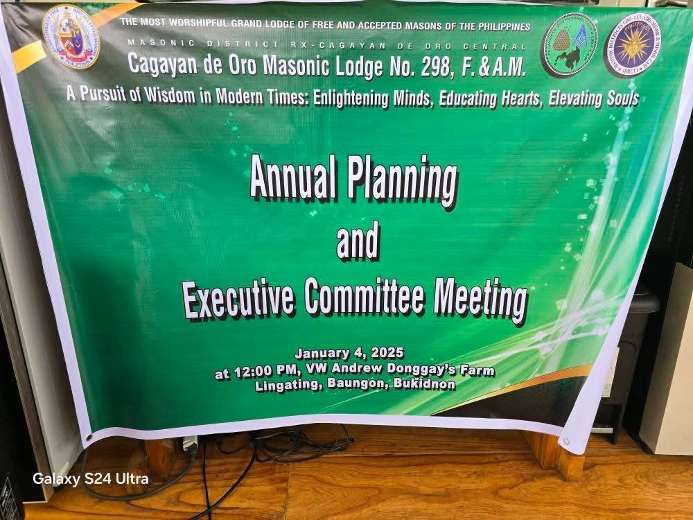 Cagayan de Oro Masonic Lodge No. 298 have successfully coonducted its Annual Planning & 1st Executive Committee (ExeCom) Meeting last January 4, 2025. In order to lay down its plans, projects, programs, and activities for the ensuing Masonic Year in achieving the theme: “A Pursuit of Wisdom in Modern Times: Enlightening Minds, Educating Hearts, Elevating Souls.” Photo courtesy to WM Sir Franco A. Catajoy, Brother Sir Jon Olivier T. Amparo, and VW Sir Kristoffer Eric D. Abellanosa, PDGL.